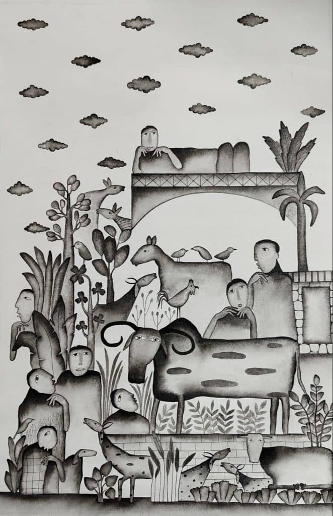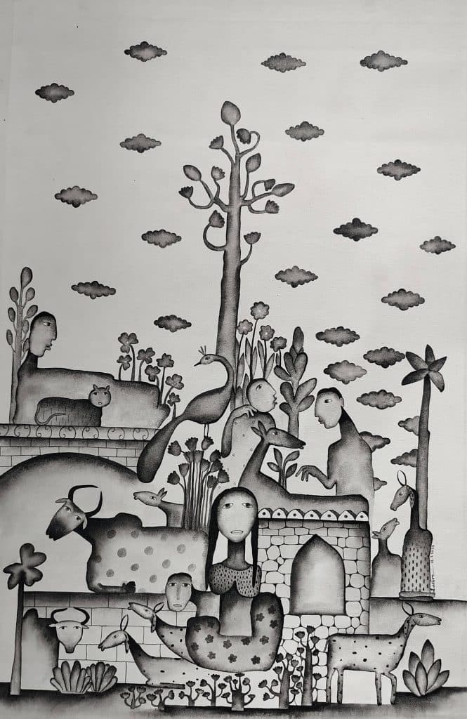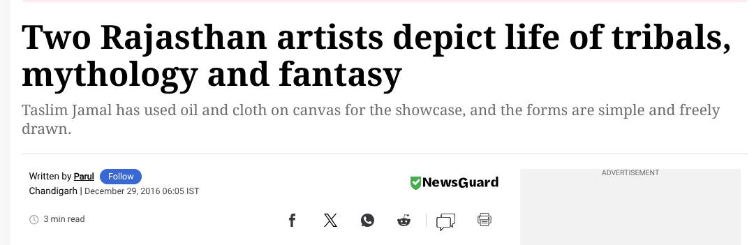 Taslim Jamal es un aclamado pintor figurativo con 14 años de experiencia, que exhibe una prolífica carrera marcada por numerosas exposiciones individuales y colectivas en India e internacionalmente. Desde 2009, su trayectoria artística ha abarcado prestigiosos lugares como el Jawahar Kala Kendra en Jaipur y el Punjab Kala Bhawan en Chandigarh, mostrando su estilo distintivo en exposiciones como "Uddan" y "Garhi". Su talento ha cosechado un importante reconocimiento a través de premios como el Premio Nacional AIFACS, los premios Prafulla Gold y City, y el Premio Estatal Kalanand. Además, Jamal ha participado en campamentos de arte nacionales e internacionales, incluidos los organizados por la Lalit Kala Akademi y la Academia Lalit Kala de Chandigarh, enriqueciendo su práctica artística y expandiendo su red. Sus obras se encuentran en colecciones privadas tanto a nivel nacional como internacional, consolidando su posición como un artista contemporáneo líder. El compromiso de este artista establecido con su oficio es evidente a través de su participación constante en exposiciones y su dedicación a mejorar sus habilidades a través de talleres y colaboraciones.